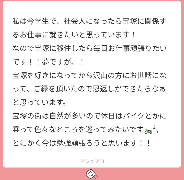 宝塚で就職決まったらまた連絡下さい。